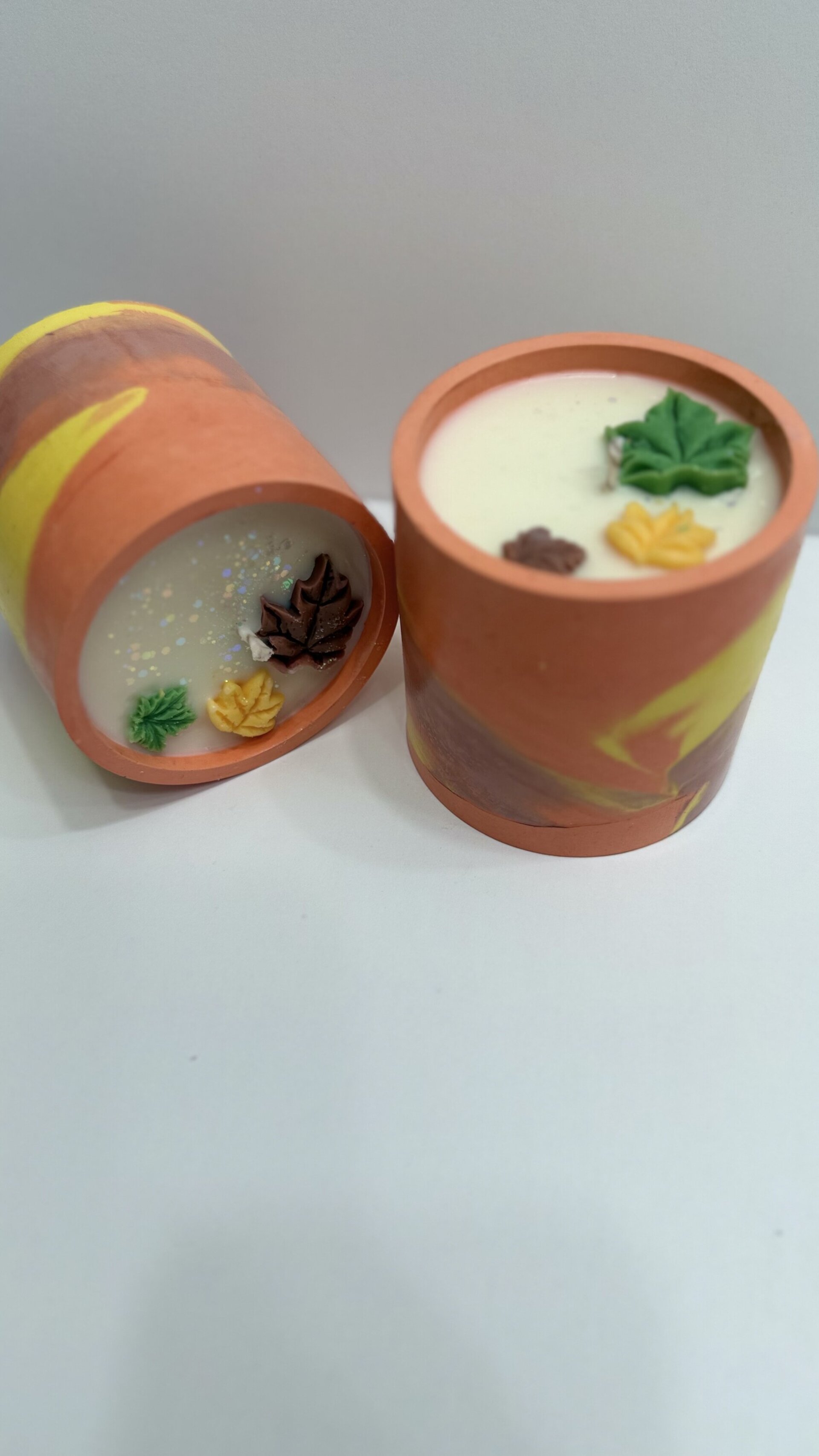 Todas las velas están fabricadas con cera de soja 100% natural, libre de tóxicos. Los recipientes son artesanales, hechos por nosotros mismos con mucho cariño y amor.